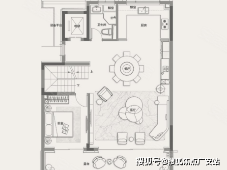 上叠户型楼上待客、楼下休息,三层是居住空间,四层是会客空间,做到了垂直动静分离!
