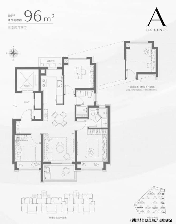 建筑面积约96㎡3房经典飞机户型精致进阶