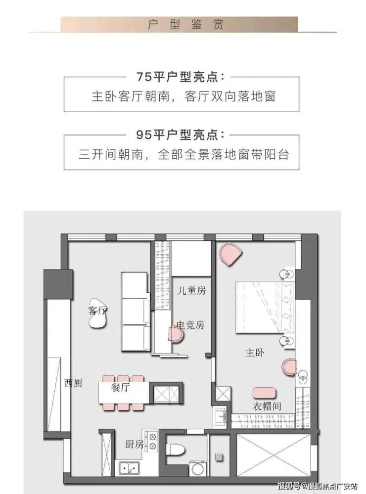 户型面积总价区间特点一室一厅一卫约75㎡约558-580万/套入门级不限购户型,南向采光,全景飘窗,开放式厨房,适合单身或小夫妻两室一厅一卫约80.66㎡约590-620万/套主力户型,南北通透,LDK一体化设计,U型厨房,主卧带衣帽间两室一厅一卫约96㎡约660-698万/套奢阔户型,南向面宽达9米,双卧朝南,独立储藏室,干湿分离卫浴