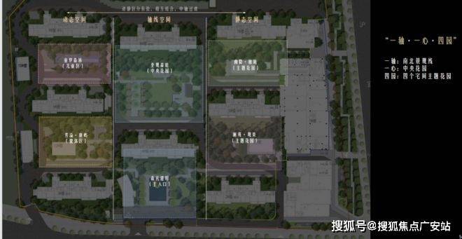 设计理念:围绕“一轴·一心·四园”的景观设计理念,以中央花园和健康静谧的组团花园,通过现代主义建筑风格演绎,呈现充满运动活力和健康生活的公园式品质社区。