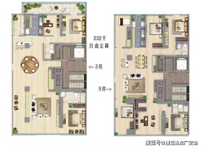• 面 积:200.96㎡-.㎡(交付三房两厅三卫)