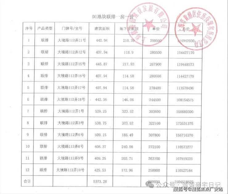 【一房一价表】