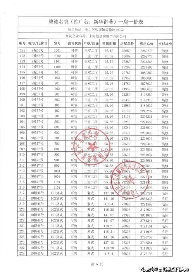 一房一价表如下: