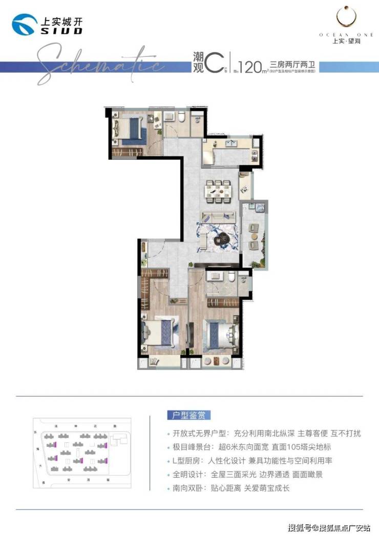 【上实·望海】项目规划12栋16F高层住宅,1栋13层高层住宅,2栋16层底层带社区商业配套住宅,1栋2层社区商业配套附楼等。目前项目在售建面约100-122㎡3房户型