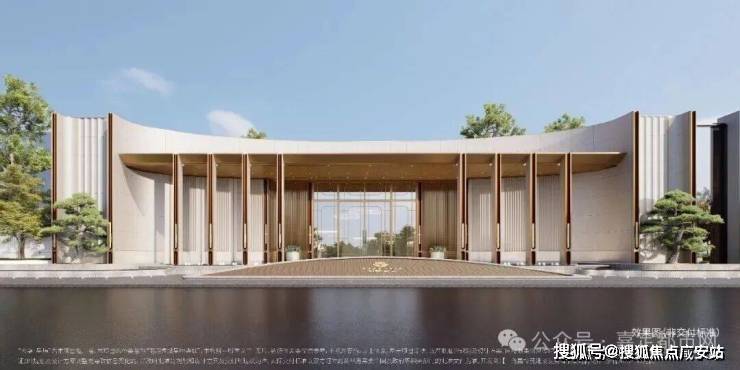 在选材上,项目采用米色石材、铝板和金属镶框进行多元混搭,重点刻画单元入口、入户大堂等细节,质感非常丰富。尤其艺术感的弧形镜面立面,与门前蜿蜒的水岸风光相呼应,让建筑仿佛拥有了呼吸感和浪漫的情绪。