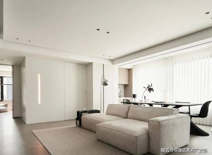 ▲ 客厅取消传统茶几的布局,腾出更多活动空间,选择模块沙发更加自由随性,也可以后期自己调整布局