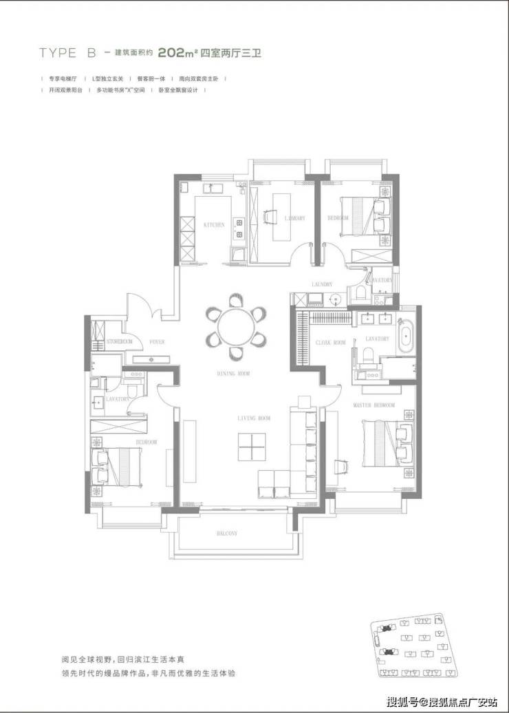 准一梯一户纯大平层+折叠园林+约3000㎡会所,层高3.3-3.5米。