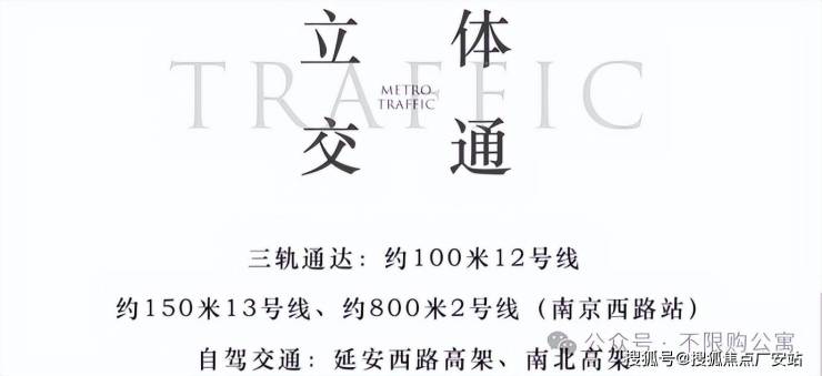 地铁2号线、12号线、13号线交汇,项目距地铁口南京西路站仅100米;延安高架、南北高架环绕,距离高架仅数百米,距虹桥机场仅25分钟车程。
