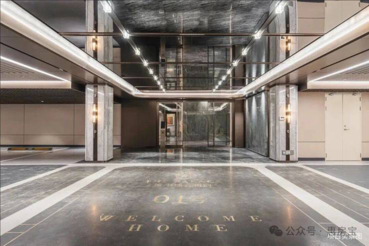 走进中环云悦府实景地库,顶部焕然一新的镜面选材映衬着地库里的光影交织,调配后的造型灯发出柔和光感,开启一场归家的艺术之旅。为贴合项目高端住区调性,车马厅背景墙融入不锈钢造型细节,大面积奢石岩板覆于墙面;地库柱子采用更具视觉艺术的弧形石材,搭配艺术壁灯;行车道吊顶颜色以高级灰白色,提升地库品质。
