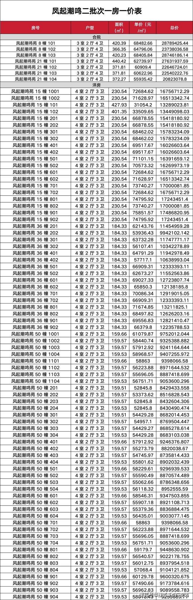 合院:262-676㎡(4室2厅5卫)。