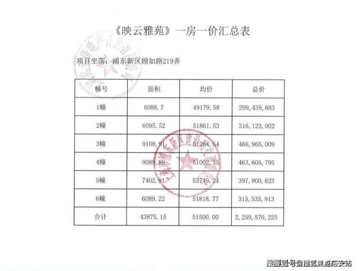 项目一房一价表▼