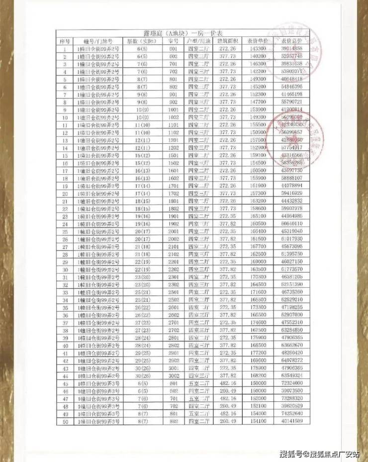 一房一价表