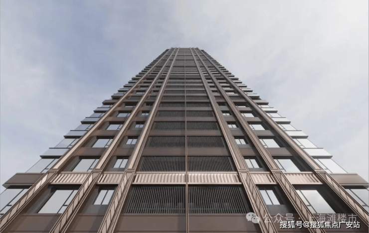 外立面不计成本,采用大面积铝板!从效果图看,海玥黄浦源通过古铜色、深灰色+铝板、镜面铝板的完美搭配,再镶嵌竖向线条和立面层次,体现出威仪肃穆的高级感。