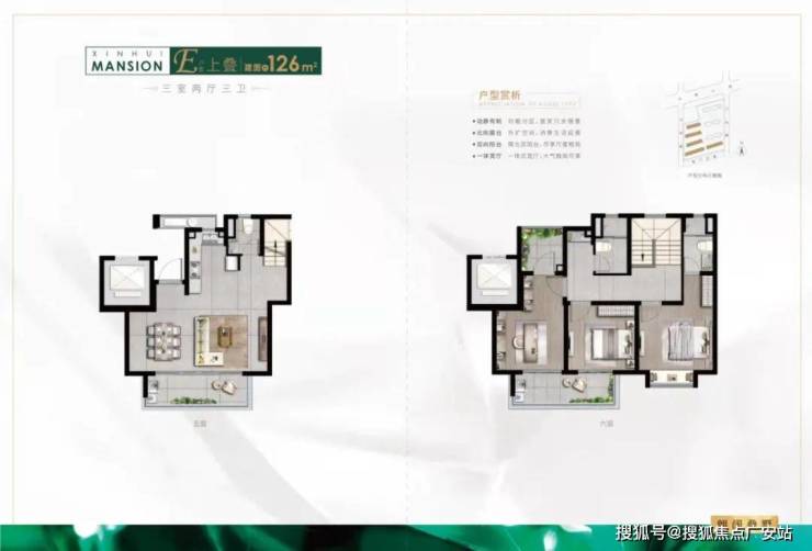 叠拼户型按竖向划分动静分区丰富的生活场景间随心切换互不干扰,套房化主卧带来类酒店居住体验的舒适感,视界宽景飘窗融合生态风光。