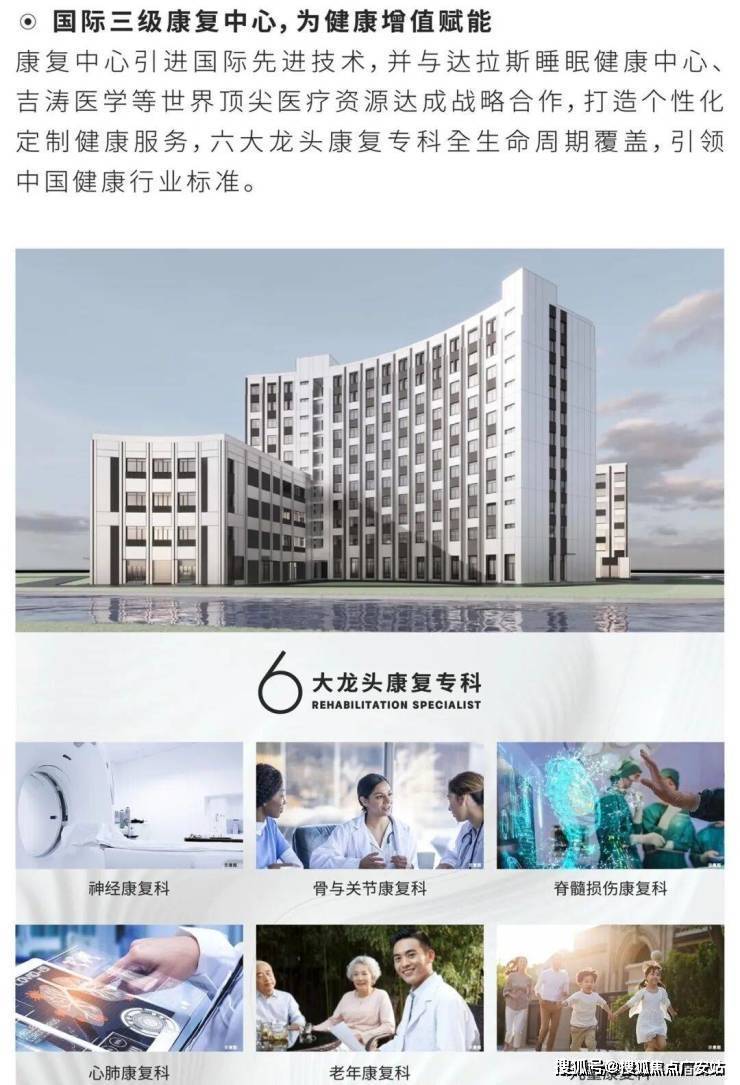 社区规划:占地约400亩,涵盖高端酒店、三级康复中心、九年一贯制学校、商业街区等,生活配套齐全