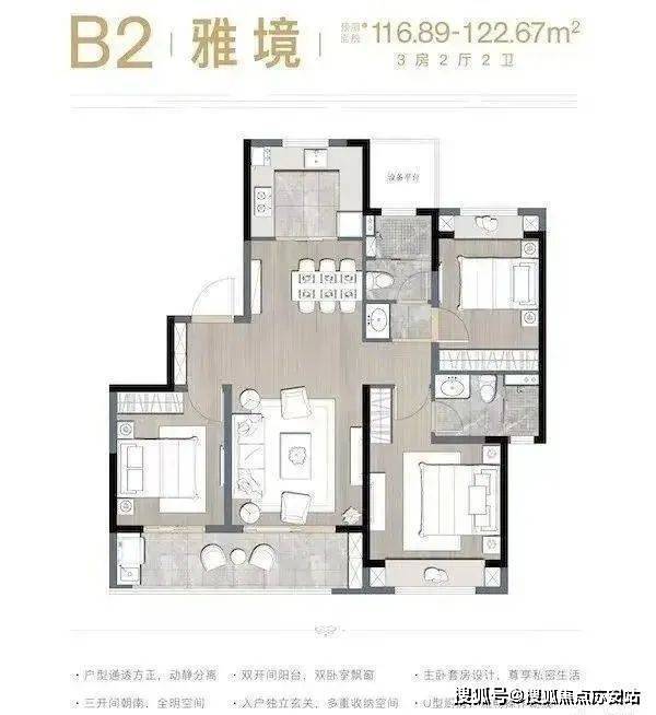 三居:98㎡(紧凑型)、122㎡(动静分区)