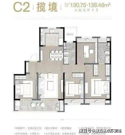 四居:136㎡(南北通透)、140㎡(双阳台设计)