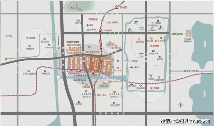 通达性:从这里出发,5站路即可到达苏州火车站,5站换乘到新区狮山,8站抵达园区湖西