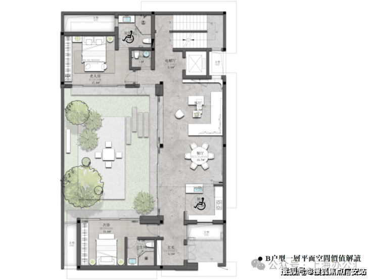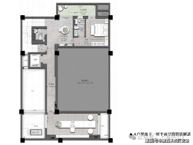⑤地下室设计6米挑高客厅、附有下沉式花园采光天井、豪华装修交付标准、带电梯