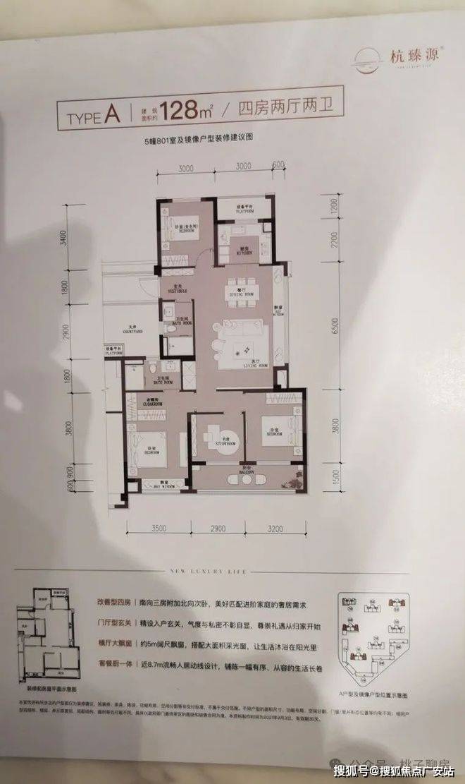 建面约128方户型图示意