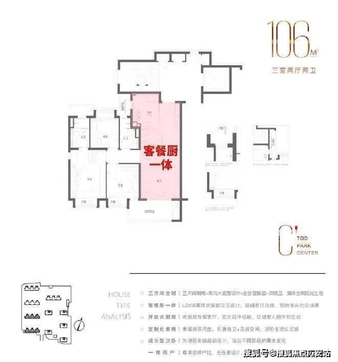 保利光合跃城售楼处电话:400-9988-414✔✔【预约热线】其次是客餐厅与厨房的一体化布局,最大限度地减少了公共区域的空间浪费,创造出的空间感和尺度感远超同价位的其他竞争产品。此外,该户型还提供了充足的灵活空间,每个卧室均设有飘窗,同时设计了一个宽达1.5个开间面宽的阳台,并在一侧采用了转角玻璃设计,进一步增强了阳台的采光效果和视野开阔度。