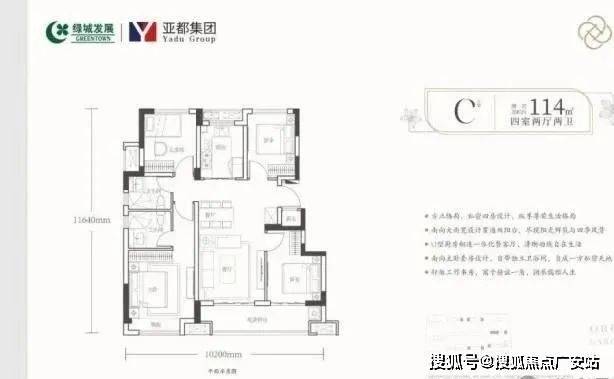 100方三房两卫,114方、125方四房两卫,一梯两户,高得房率