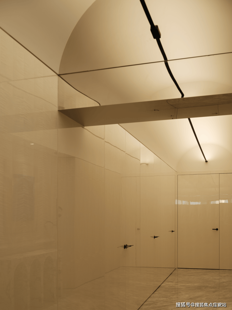 拱形吊顶与天际线灯的经典组合,宛如一条时光隧道的入口,指引人向前探索。感受着被艺术气息包裹的氛围,随着空间的深入,形式与功能的交融愈发清晰。