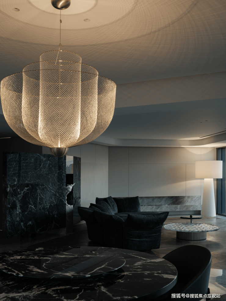 直线、曲线与点、块、面的组合搭配多而不繁,简洁精致的造型设计诠释出居住者轻奢优雅的生活氛围与时尚个性的品味追求,见证场域内自在与品质的交叠重生。