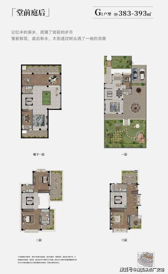 在售的别墅面积主要是393㎡的双拼和547-646㎡的独栋;