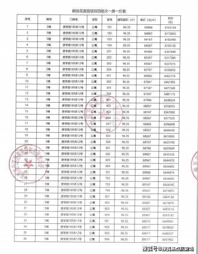一房一价表