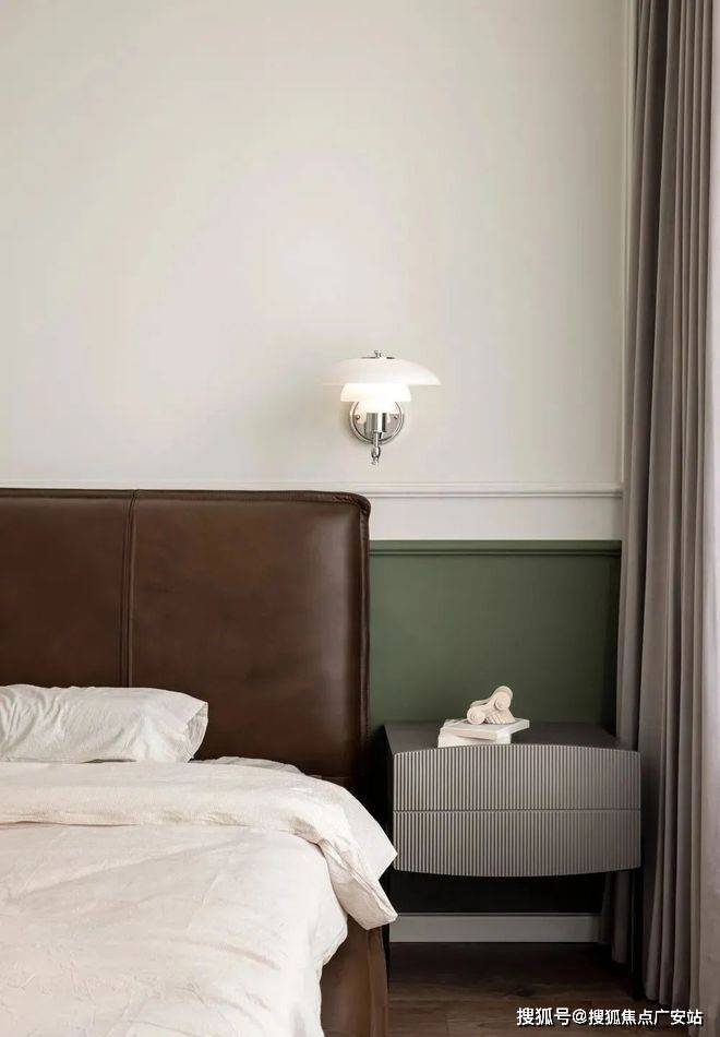 ▲ 主卧,细腻深邃的沉淀之美,丛林绿、奶油白、深邃棕,让卧室变得沉稳而有内涵