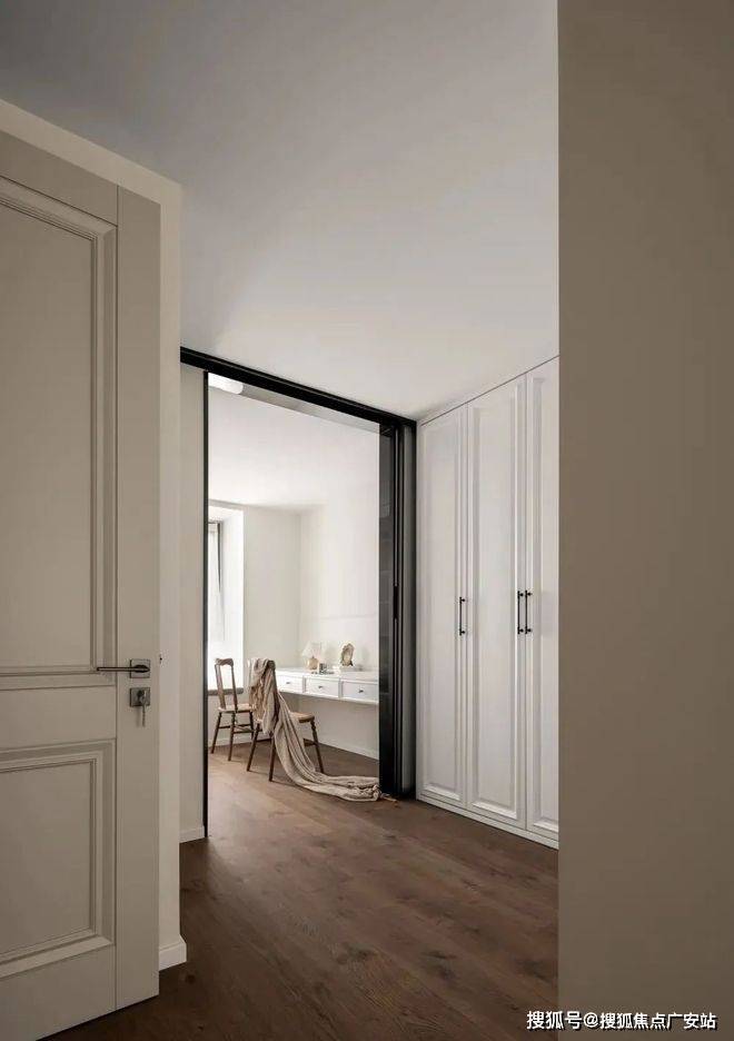 ▲ 玄关,通过调整老人房的门洞和内部卫生间的布局,实现双面柜体设计,拥有业主需要的储物间(右侧门后),形成一个成熟的收纳系统