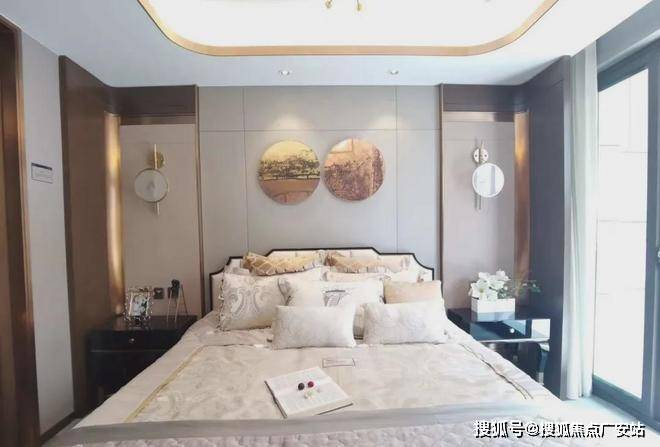 ▲ 主卧的软硬装搭配满溢浓厚的美式情调,呈现安宁又细腻深邃的沉淀之美,让每一个夜晚酣然入睡