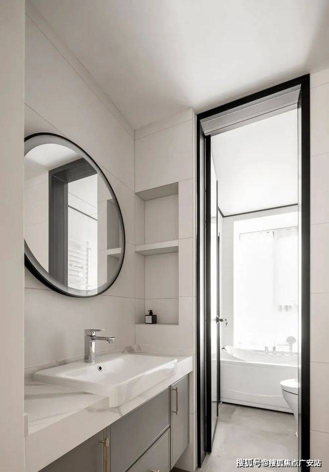▲ 卫生间干湿分区,提高使用效率,洗手台外移,利用壁龛避免台面凌乱