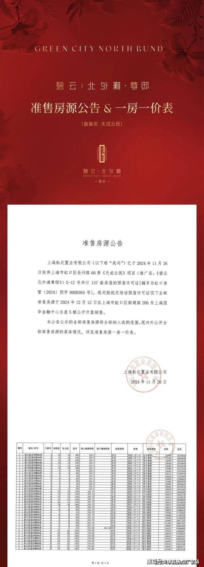 "Biyun North Bund · Zundi" has officially opened for subscription, offering four-bedroom and five-bedroom units with a construction area of approximately 180-235 square meters, with an average price of about 130,000 yuan per square meter.