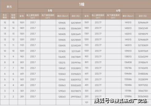 一房一价表