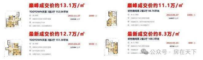 比如莘庄TODTOWN天荟,成交价突破13.1万/㎡,如今最新成交价依旧高达约12.7万/㎡,同区域没有新房,我们取样了同样紧邻莘庄地铁站的好世鹿鸣苑,成交价直逼11.1万/㎡,如今最新成交价仅约8.3万/㎡。