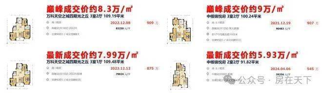 然而同区域地段更好的中核锦悦府,巅峰成交价超过9万/㎡,如今最新数据中有一套中楼层房源5.9万/㎡成交,对比初始约6万/㎡新房均价,甚至已经“破发”!