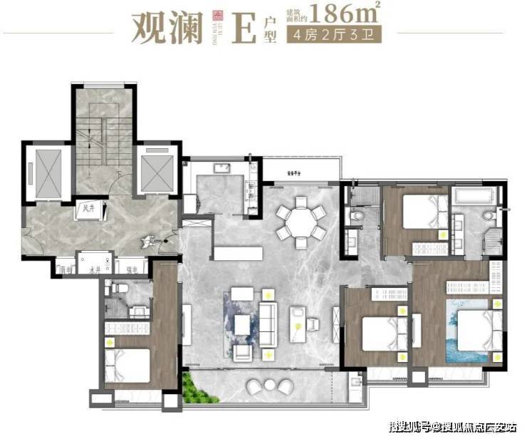主力户型为建面约138-186㎡的4居室,具体如下: