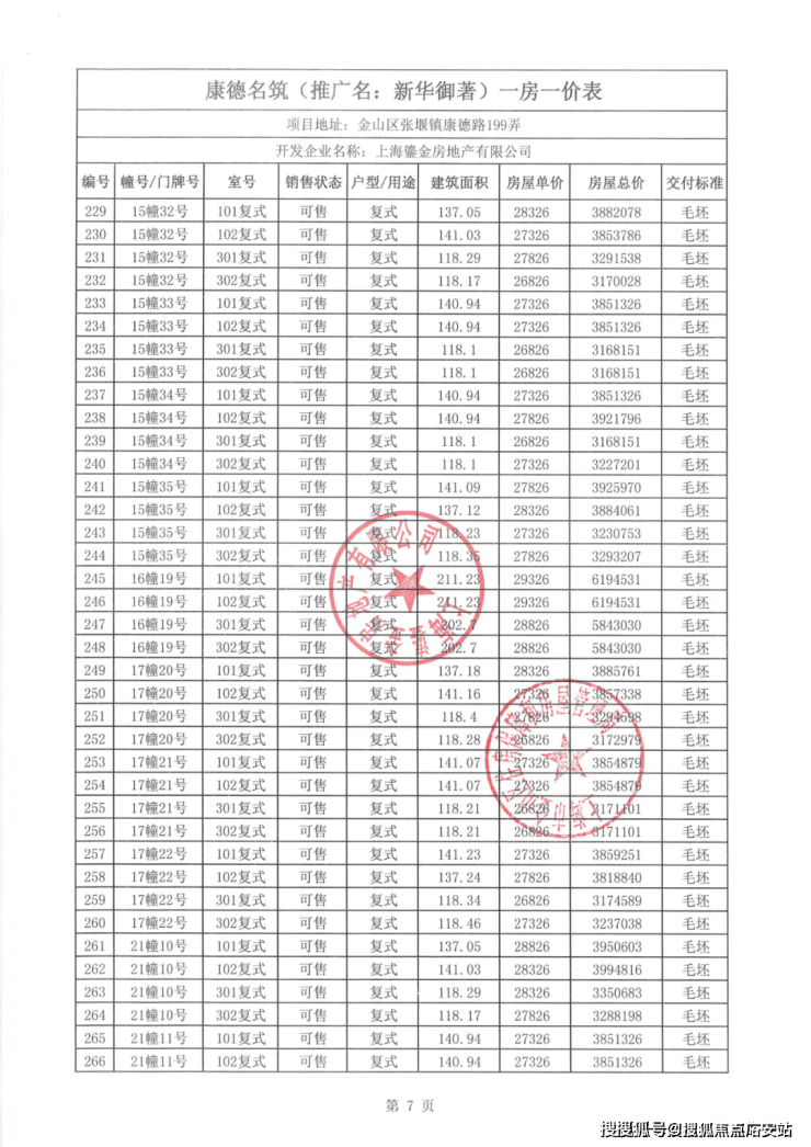 一房一价表如下:
