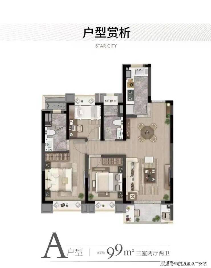 ·约89㎡户型:大虹桥范围不到90㎡的户型大部分都只做到2房,灿耀星城该面积段实现3房功能性,让自住客户一步到位,也让该产品进入二手市场后具备降维打击的优势!