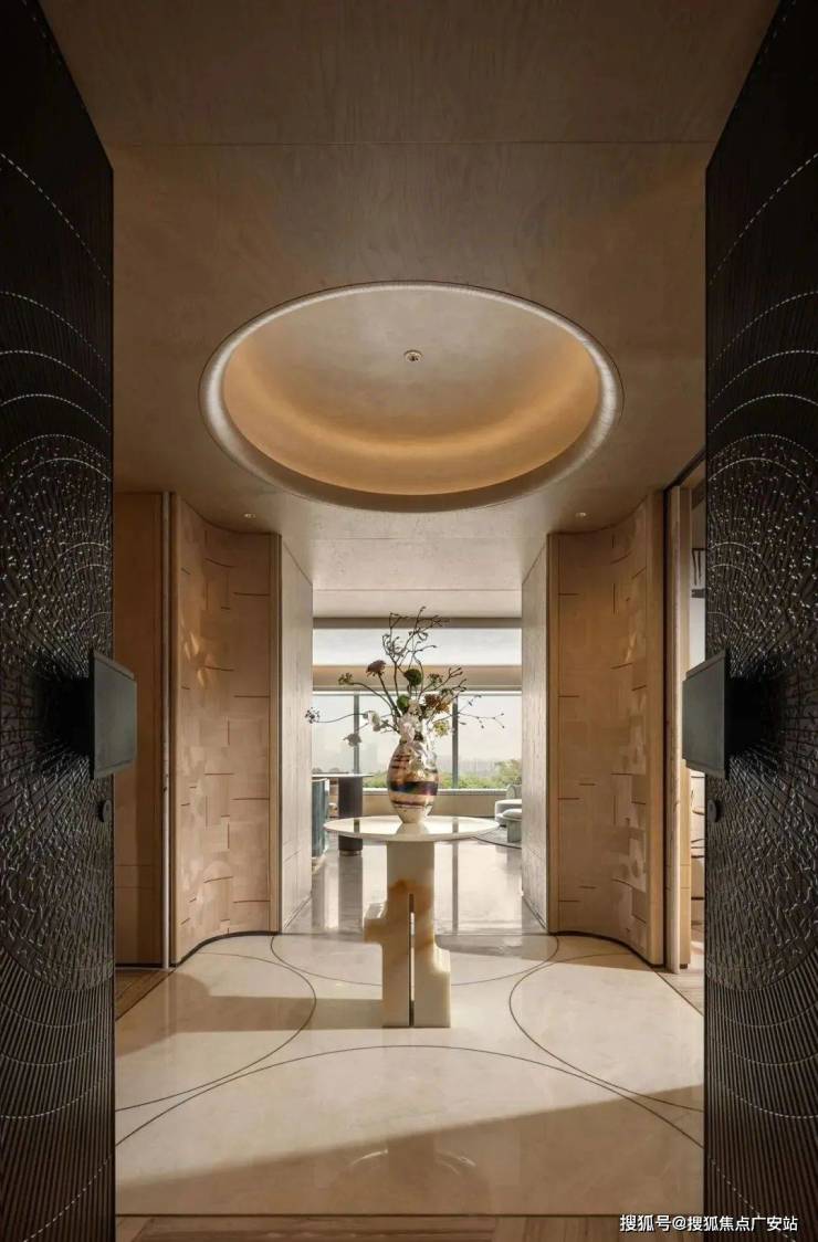 地上地下双入户大堂,地下车库电梯直达,尽享尊崇礼遇;一层高定入户门厅,弧形悬浮顶棚,时刻彰显优雅摩登。