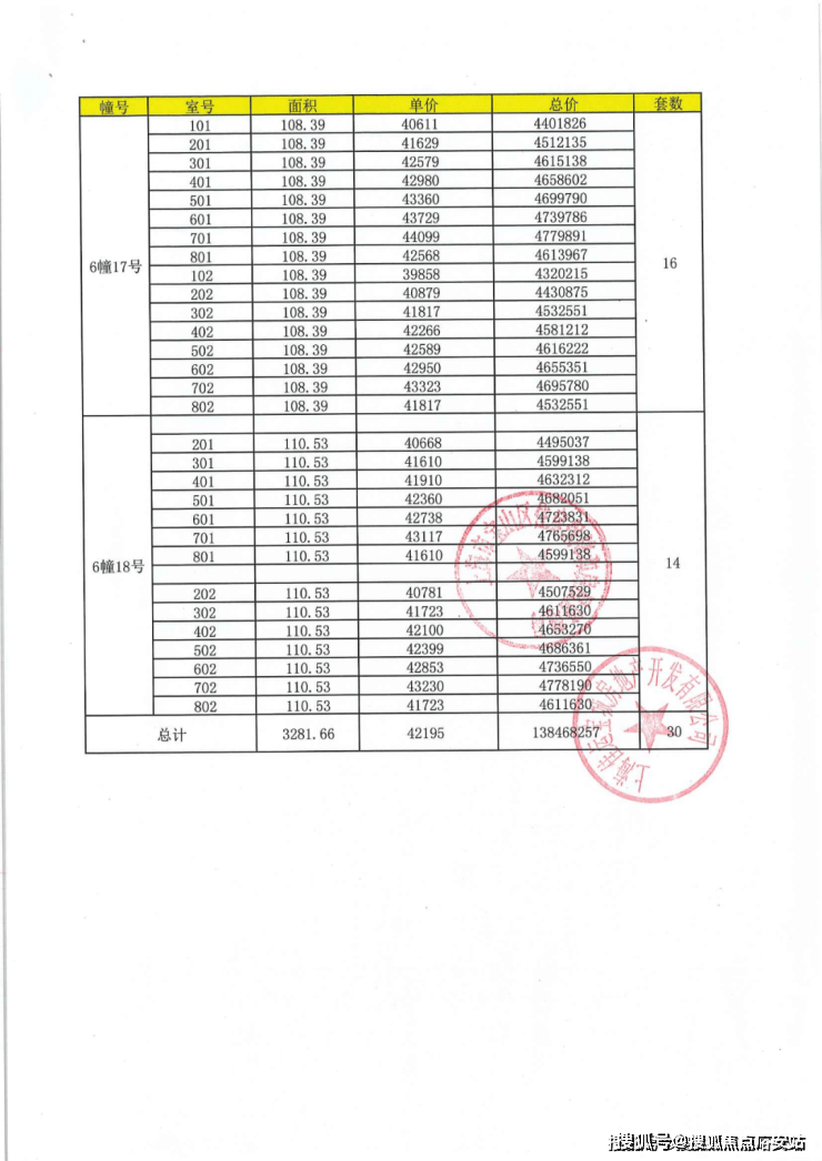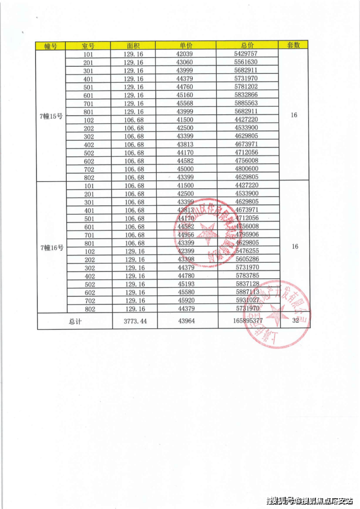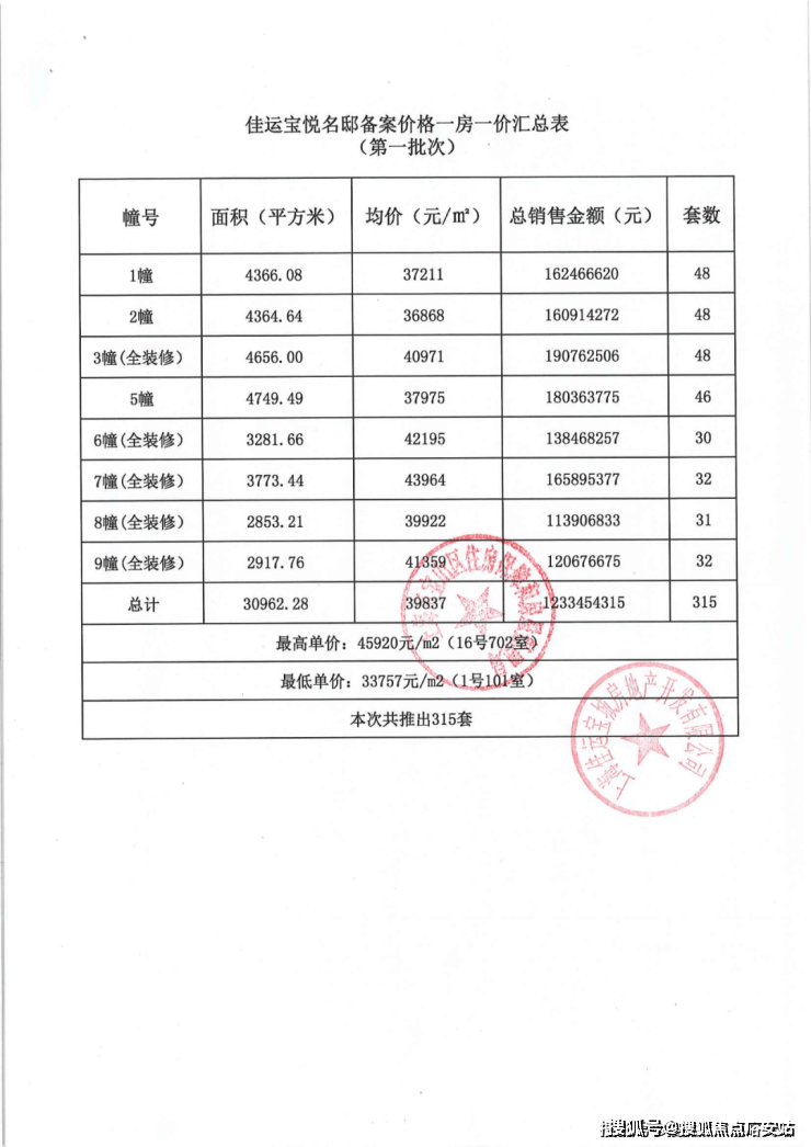 项目一房一价表