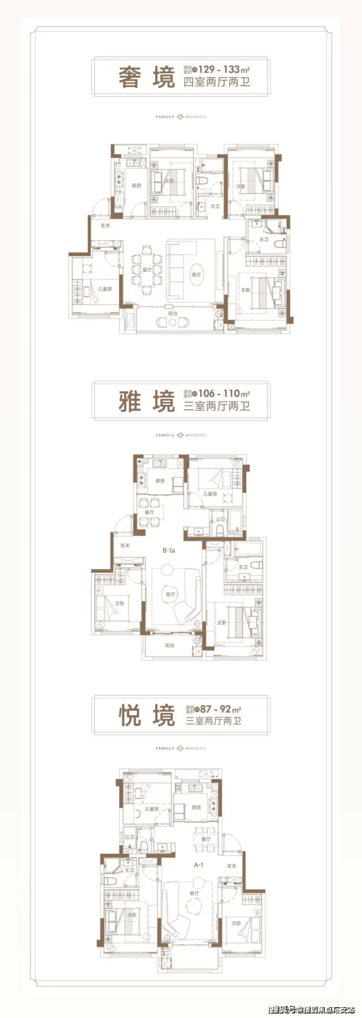 建面约90-129㎡精装3-4房