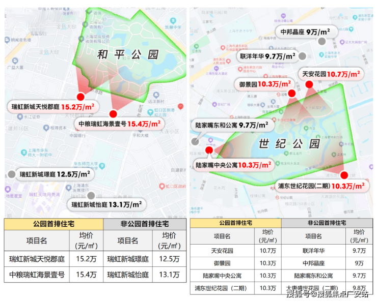 从上海本地来看,世纪公园、和平公园周边,首排住宅与非一线房源的价差形成明显优势。