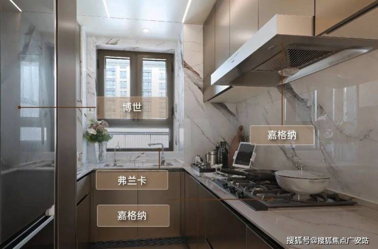 细节同样拉满:U型厨房,操作台面充裕,预留双开门冰箱位;次卫干湿分离,且紧邻北次卧,让北房间体验感接近套房;主卧套房设计,就寝区、衣帽间、卫浴间层层递进,保障私密性。