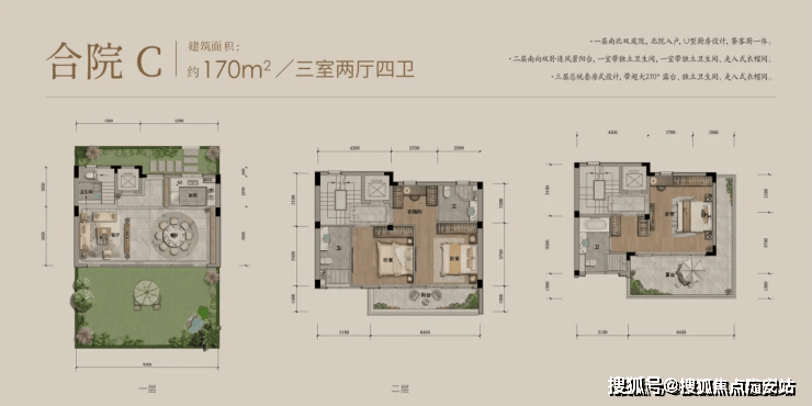 南向三开间:6.1米景观阳台衔接庭院,主卧套房配置独立衣帽间。