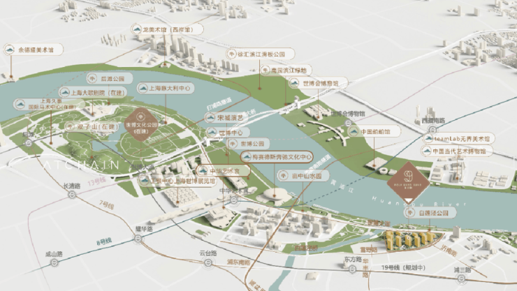 值得一提的是,世博对岸的徐汇滨江将集中建设20多座艺术美术馆,与世博滨江隔江相望。更重要的是,上海市正积极筹划建设首条跨江缆车,该缆车将横跨黄浦江,连接徐汇西岸与世博滨江板块,从而打造一条世界级的顶奢艺术带,展现黄浦江畔的独特魅力与艺术风采。