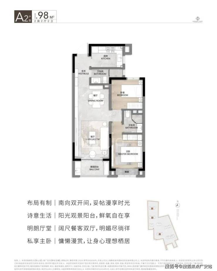 在售面积:94㎡/98㎡/100㎡2房2厅2卫