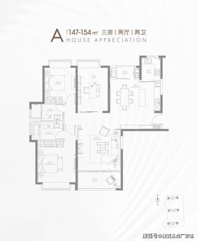 A户型 建面约147-154㎡ 3房2厅2卫